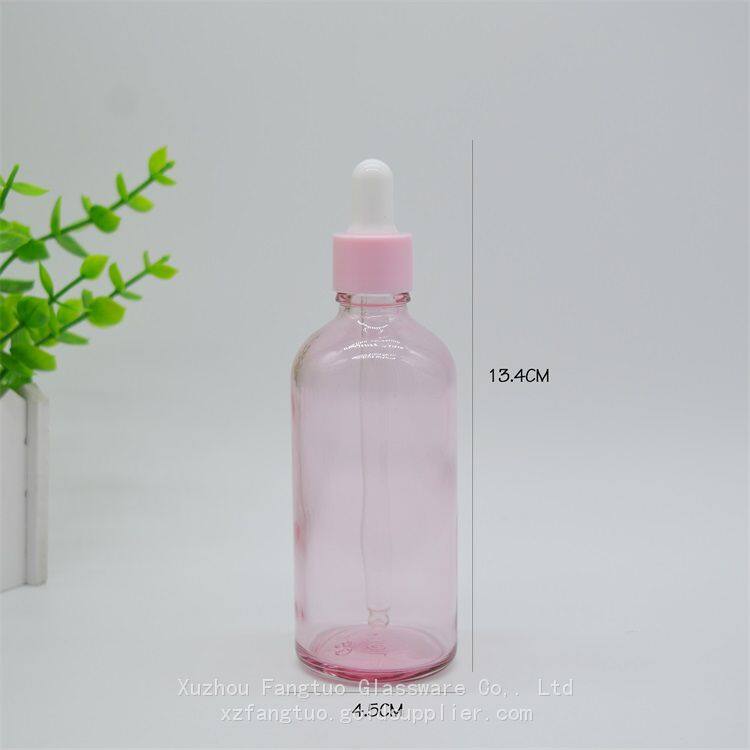 5-100ml Dropper Bottle Empty Glass Bottles Pink Color With Plastic Screw Collar White Nipple