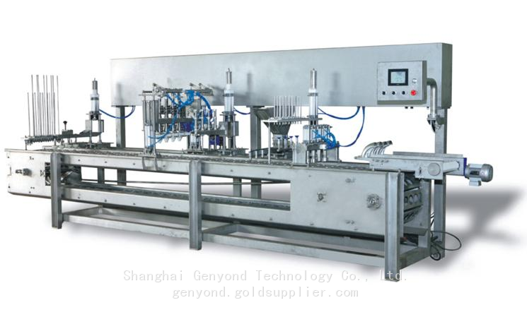 The production line can realize the changes of many varieties only by replacing its feeding head.It can produce cup ice cream, stick ice cream,chocolate-coated ice cream,kernel ice cream and ice sucker.