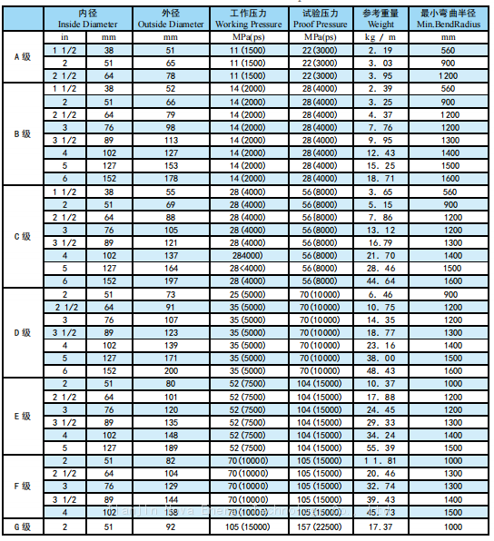 Structure: It consists of an inner rubber layer, an inner rubber protective layer, 2-6 layers of middle rubber layer, a steel wire winding layer, and a cold resistant and aging resistant outer rubber layer.