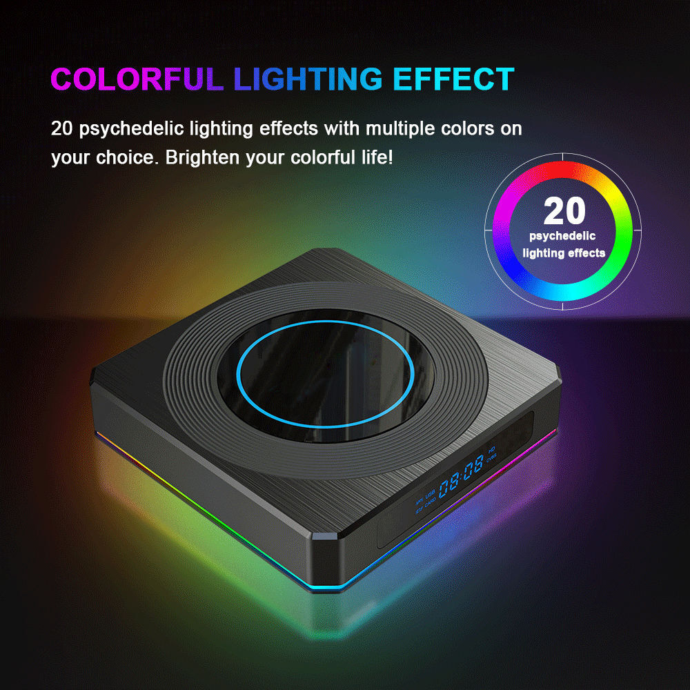 [Cool lighting Design & Service]The X96 X4 android tv box surrounding by many modes of lights which LED Status Can be switched and turn off, you can adjust the different modes according to your mood, make your life colorful.
