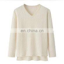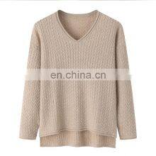 Wholesale Ladies' Pure Cashmere V Neck Pullover Casual Cable Knitted Sweater Plus Size Breathable Autumn Winter Seasons Adults