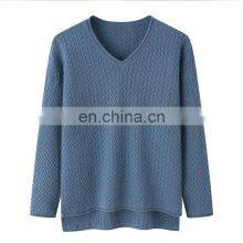 Custom Loose Knitted 100% Pure Cashmere Pullover High Quality V Neck Sweater Casual Autumn/Winter Plus Size Breathable Solid