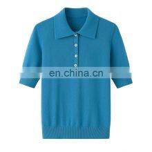 Wholesale Custom Pure Cashmere Polo Shirt Women Short Sleeves Polo Neck Solid Color Knitted Pullover Formal Style Button Spring