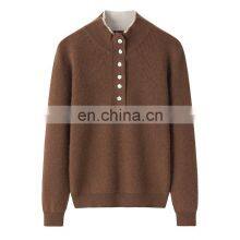 Latest Style Women's Half Button Pullover Plain Knitted Cashmere Sweater Elegant Knit Tops