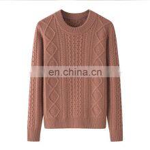 Women's 100% Cashmere Cable Knit Long Sleeves Casual Sweater Winter O-Neck With Front Logo OEM Service