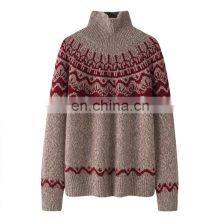 Hot Selling Women Long Sleeve Turtleneck Cashmere Wool Blend Jacquard Sweater India