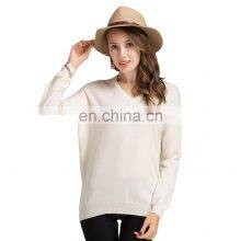 Long Sleeve White Pullover Light Basic Vneck Women Cashmere Sweater