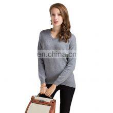New Design Classic Gray Pure Color Merino Wool Cashmere Knitting Long Sweater Women Casual Pullovers