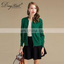Women's Long Sleeve Knitted Zipper Cardigan Color Green Cashmere Sweater for Sale