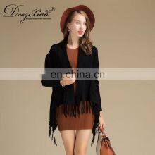 Long Sleeves Women Thick Warm Cashmere Poncho Sweater With Tassel