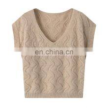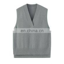 Wholesale Luxury Women's Knitted Plain Vest Solid V-Neck Collar Cashmere Waistcoat Elegant Luxury Collection