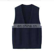 Custom Ladies Girls V-Neck Pullover Outwear Knitted Woolen Sweater Vest With Embroidered Logo Casual Style Sleeveless Design