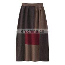 New Elegant Lady's Real Cashmere Skirt Fashionable Color Blocking Breathable Woolen Fabric Solid Pattern Natural Yarn Dyed