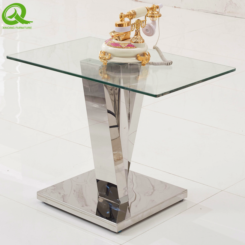 | Item Name: | luxury square tempered glass top side table living room furniture sliver legs side table steel |