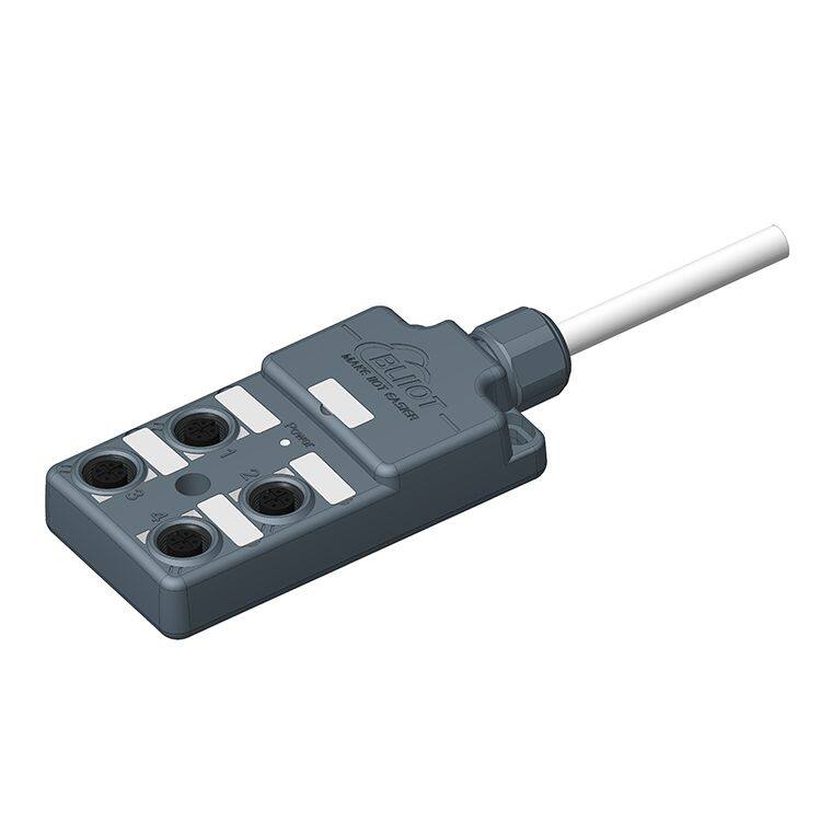 BLIIOT DBW series 4 port M12 dual-channel prefabricated cable distribution box features an industrial-grade design with a corrosion-resistant shell made of acid and alkali-resistant materials. It achieves an IP67 protection rating and can reach IP69K protection level through potting process. It is used for collecting signals from NPN or PNP sensors of different devices in the field, integrating them into a multi-core cable for connection from the sensor to the controller.