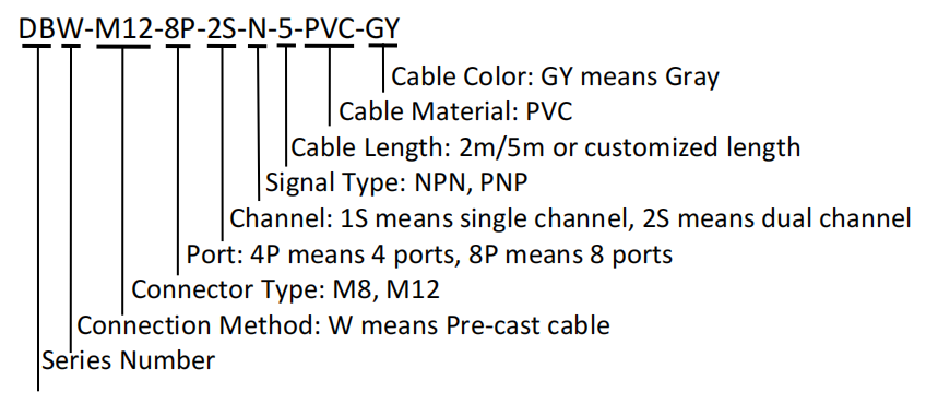 | 5m cable-8CH NPN | DBW-M12-8P-1S-N-5-PVC-GY | |