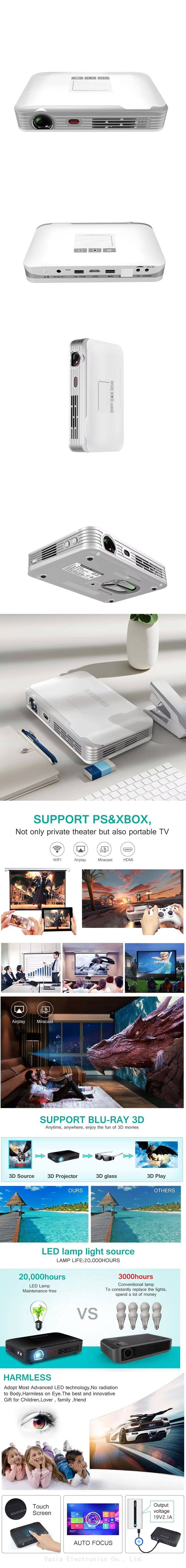 1000ANSI Lumens DLP 3D Best Portable 4k Business Projector Auto Focusing Android 6.0
