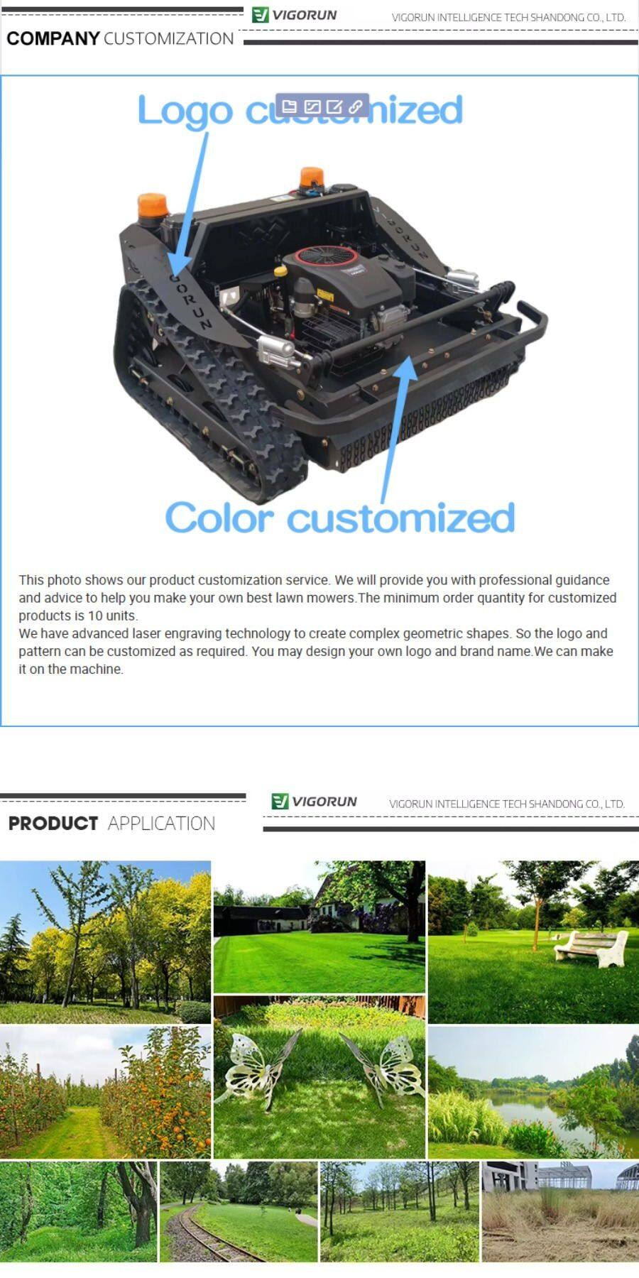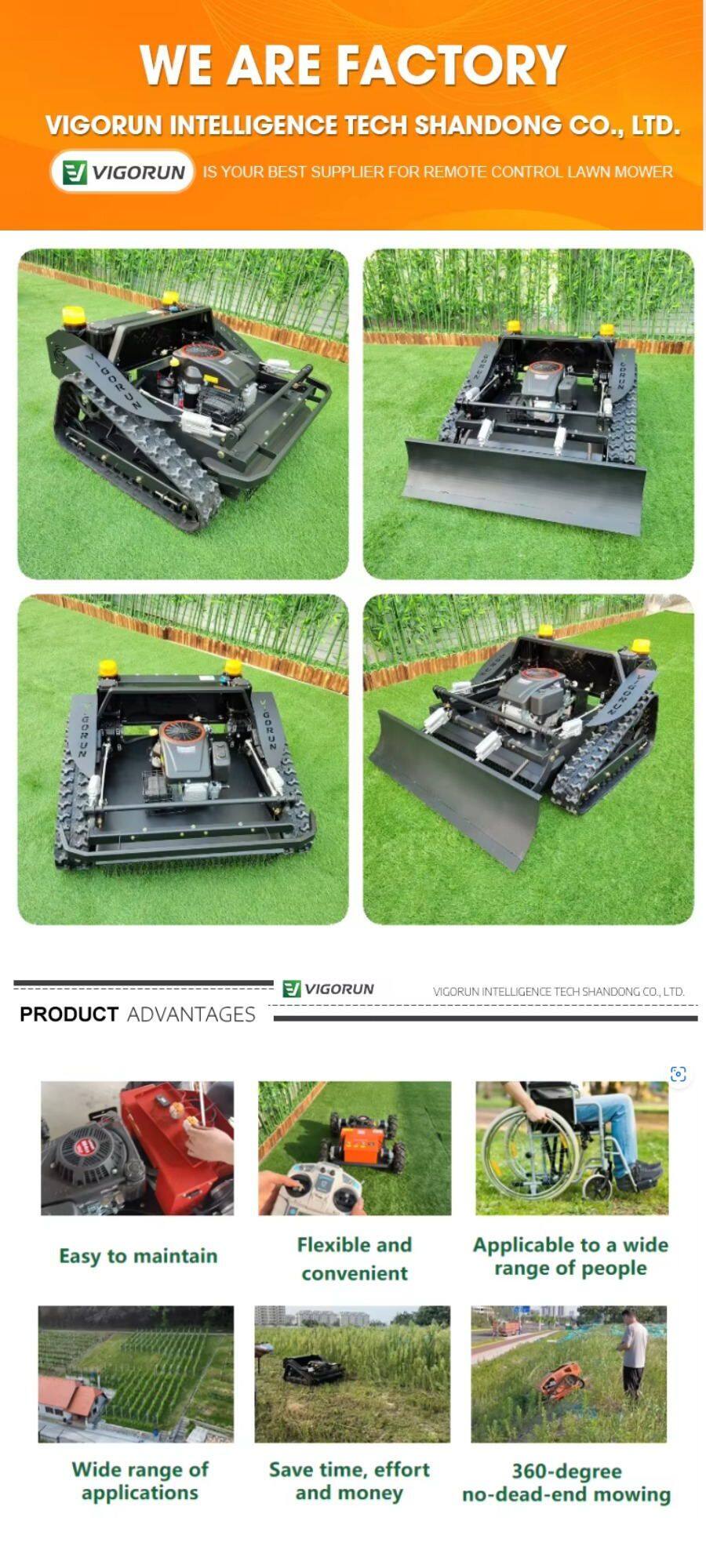 Vigorun Tech manufactures the best quality RC track lawnmower and offers them at the best prices. We provide affordable remotely controlled caterpillar lawn trimmer for sale. If you want to buy online a factory-direct low price wireless track grass cutting machine made in China, please contact us at Vigorun Tech, the leading cordless rubber track lawn cutting machine manufacturer and factory in China.