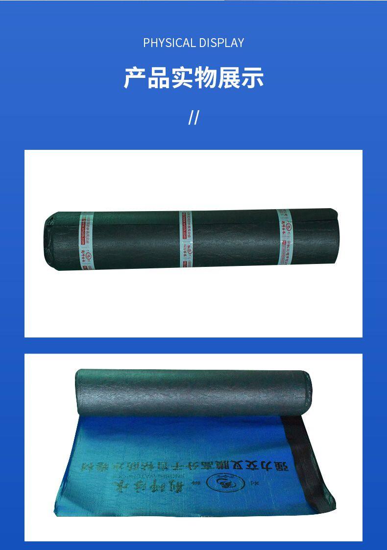 SBS waterproofing material: SBS waterproofing membrane combination SBS (styrene-butadiene-styrene) rubber modified asphalt waterproofing with high-quality strong carrier, through the use of advanced production machinery. The result is a series of world-class leading SBS waterproofing coiled sheets that provide long-term and reliable protection for construction and civil engineering. Good product range provides design flexibility and aesthetic finishes stylist arrangement that ensures performance assurance and often gives care to the life of the building, the Thermoplastic elastomer is impregnated with bitumen as a modifier and coated with a covering material. The surface is coated with a crimp sheet waterproof roll made of polyethylene film, fine sand, mineral (granular) material or insulation material of aluminum foil and copper foil. Product use, application 1. Polyester felt tire-based elastomer modified asphalt waterproofing membrane is suitable for industrial and civil buildings, roofing and underground waterproofing works. 2. Glass fiber reinforced polyester felt tire rolls are suitable for mechanically fastened single-pass waterproof, but need to pass wind load test. 3. The glass fiber felt tyre base roll is suitable for the structural stability of general roof and underground waterproofing works. 4. A surface separating material for an opaque mineral aggregate exposed to a waterproof material. 5. Underground engineering waterproof appropriate use of surface thermal insulation materials for fine waterproofing membrane.