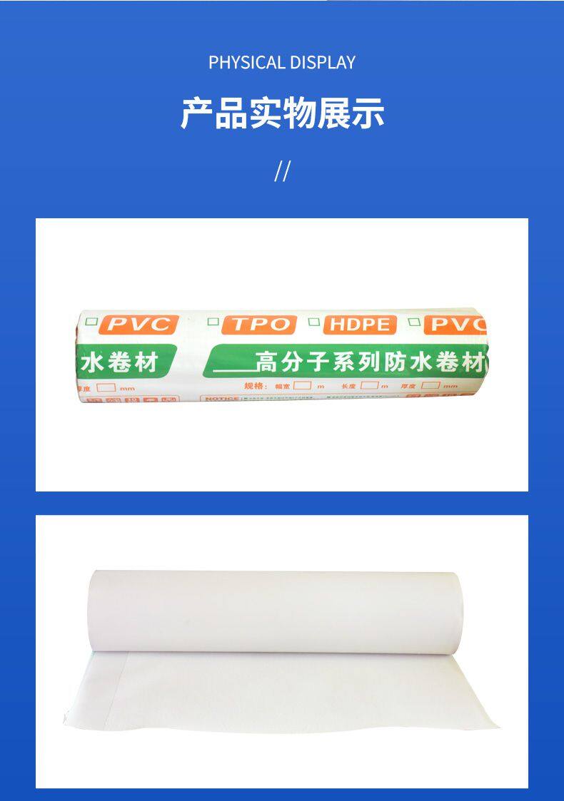 PVC waterproof membrane can variously be used to the roof of building, underground building, tunnel, dam, pool, sewage treatment works, garbage disposal facilities. It also can be suitable to any requirement of all kinds of technological practice and different grand of roof waterproof and underground constructions waterproof.