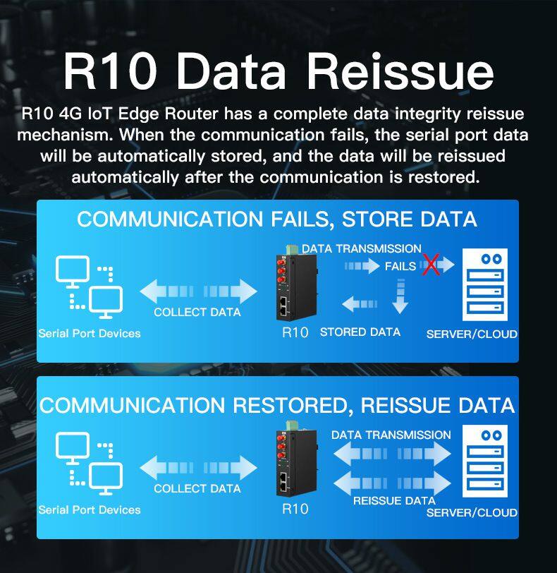 When the industrial router communication fails, the data will be automatically restored and retransmit when communication restored.