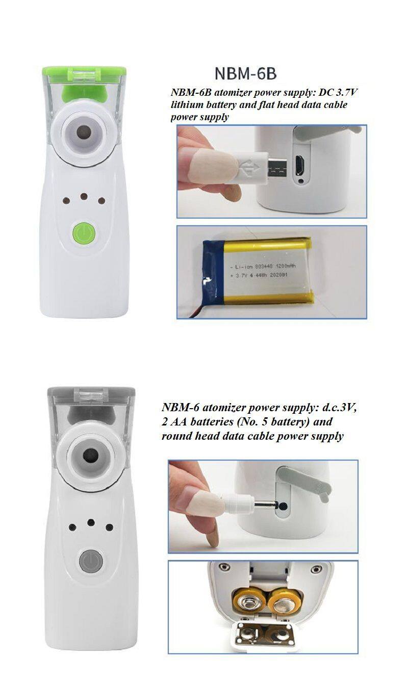 NBM-6 atomizer power supply: DC 3V, 2 AA batteries (No. 5 battery) and round head data cable power supply.