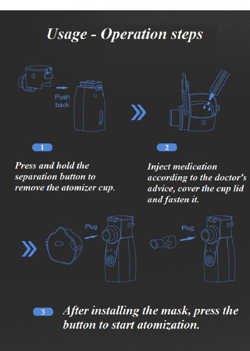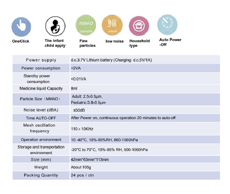 Features: Ultrasonic atomization, compact and convenient, fine atomized particles, easy to absorb.