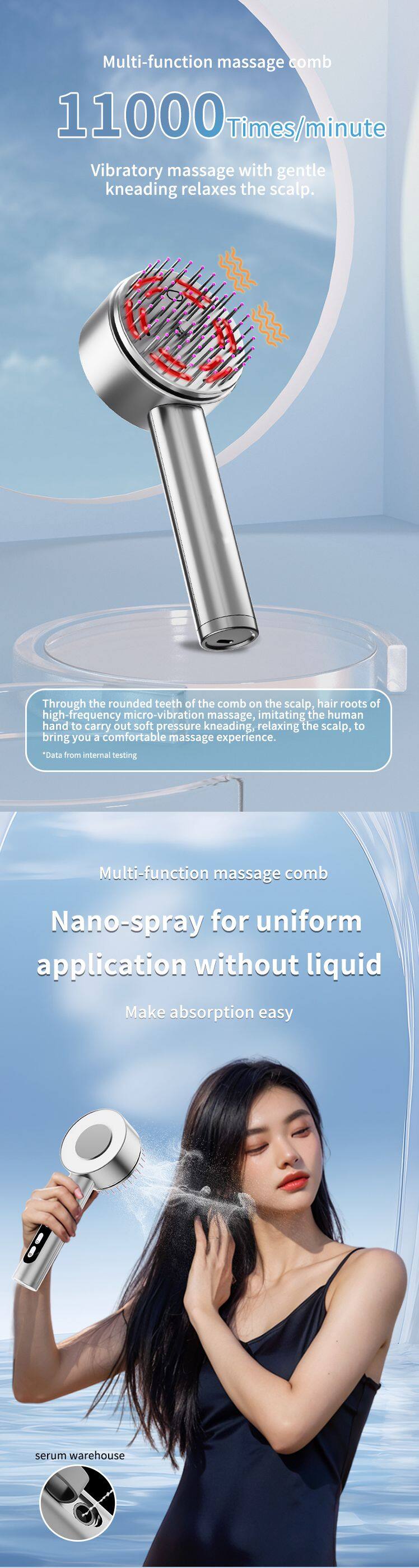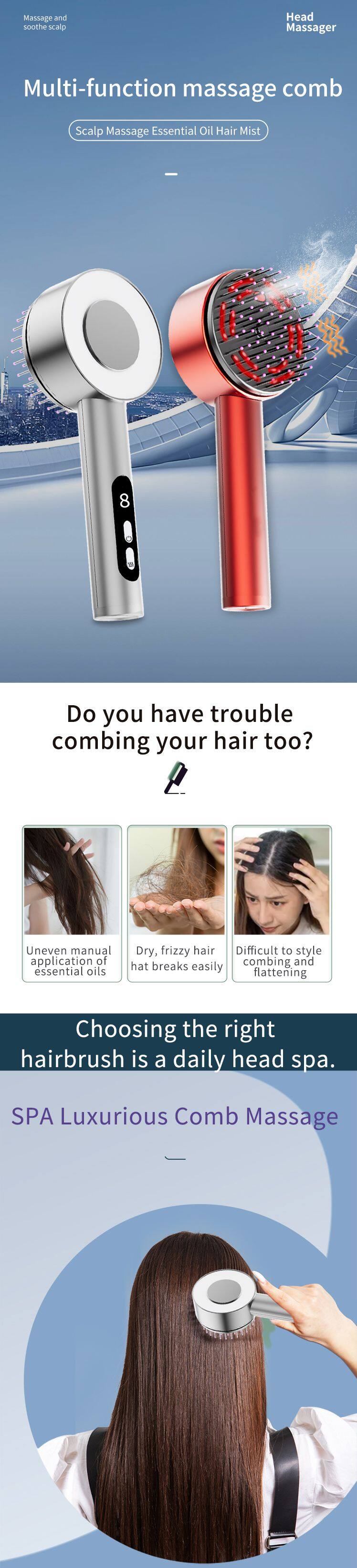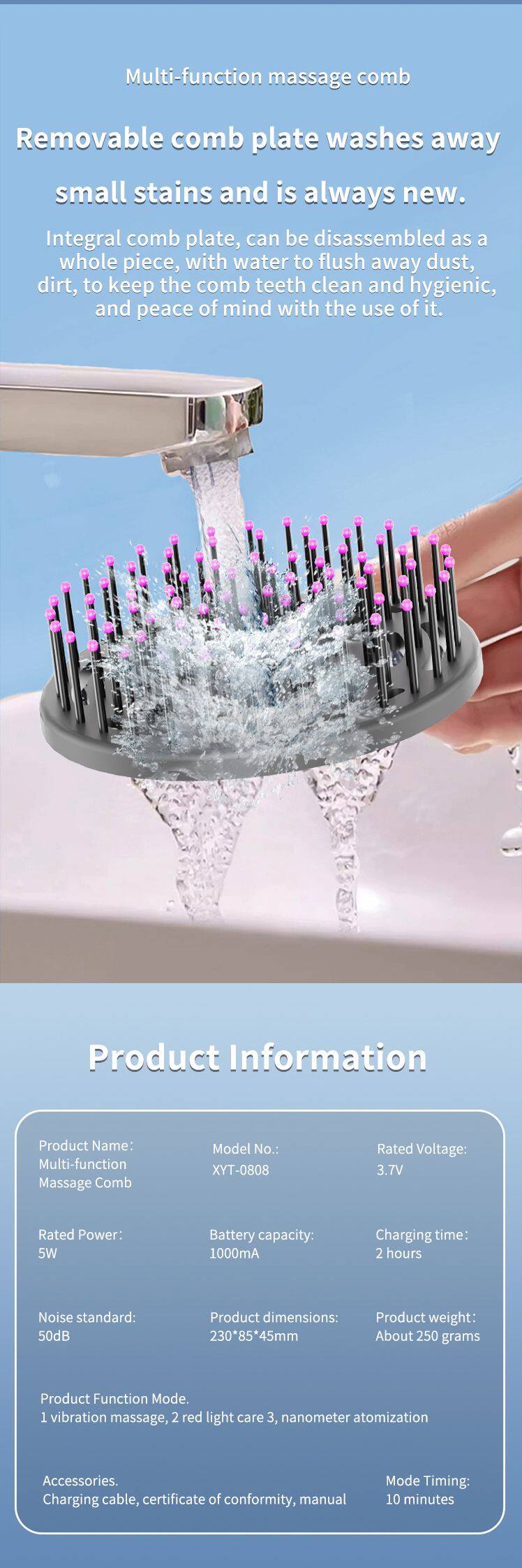 Ionic Hair Massager Comb Three Gears Electric Spray Micro Current Nourishing Scalp Anti-Hair Loss Red Blue Light Head Massager