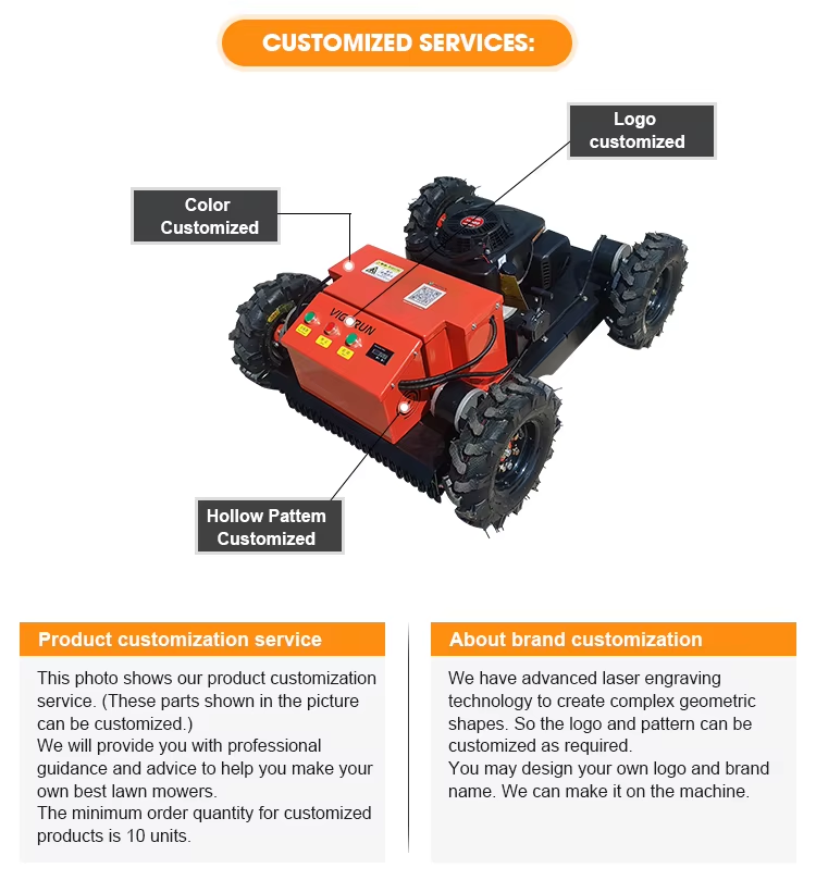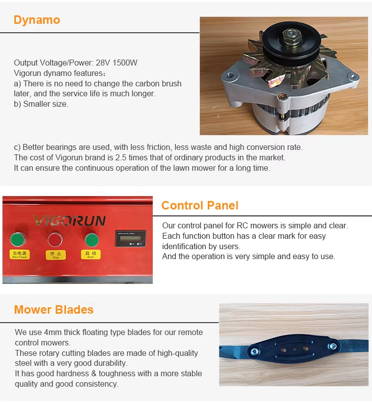 Vigorun Tech is a professional remote control grass cutter lawn mower manufacturer located in China. We focus on cordless brush cutters manufacturing only. Our company has a solid industrial foundation and a well-developed machinery manufacturing industry. The founder of the company has been engaged in related fields for decades, with 15 years of experience in construction machinery manufacturing, 7 years of experience in manufacturing and exporting agricultural drones, and 20 years of experience in foreign trade export. The product adopts the world's most advanced wireless remote control technology and intelligent automatic control technology. RC mowing robots are the main products of our company at present. They can be widely used in mowing, weeding, pruning shrubs, fruit tree transportation, etc. And they’re suitable for slopes, steep slopes, wasteland, roadsides, river banks, orchards, weeds , villa lawn, football field, garden, etc. We can produce about 1000 sets grass cutters per month. We have a professional quality inspection department and experienced quality inspectors. All mowing machines are 100% field tested both indoors and out to ensure they are qualified and ready to use prior to delivery. Our company has a complete after-sales service system. Based on the in-depth understanding of our products, we can provide customers with online technical support and solve user product problems very quickly. All dealers and end users can enjoy the ultimate service we provide. Welcome friends from all over the world to come to consult and discuss cooperation.