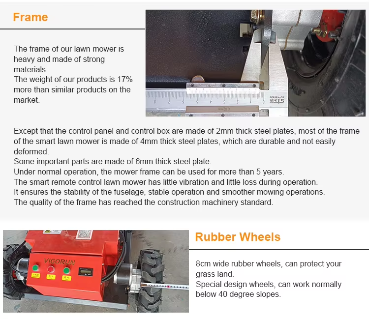 We are a manufacturer which focuses on the production of remote control grass cutter lawn mowers only. Compared with many other companies which do not produce their own but sell consignments, we do have obvious advantages in product research and development. Our products perform exceptionally well due to state-of-the-art technology and high-tech configurations. Compared with similar products, our price advantage is significant. Based on the in-depth understanding of products, we provide the best quality and efficient after-sales services which can directly help customers solve product problems online and provide fast technical support.