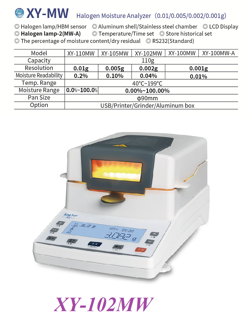 Moisture readability: 0.2%/0.1%/0.04%/0.01%,