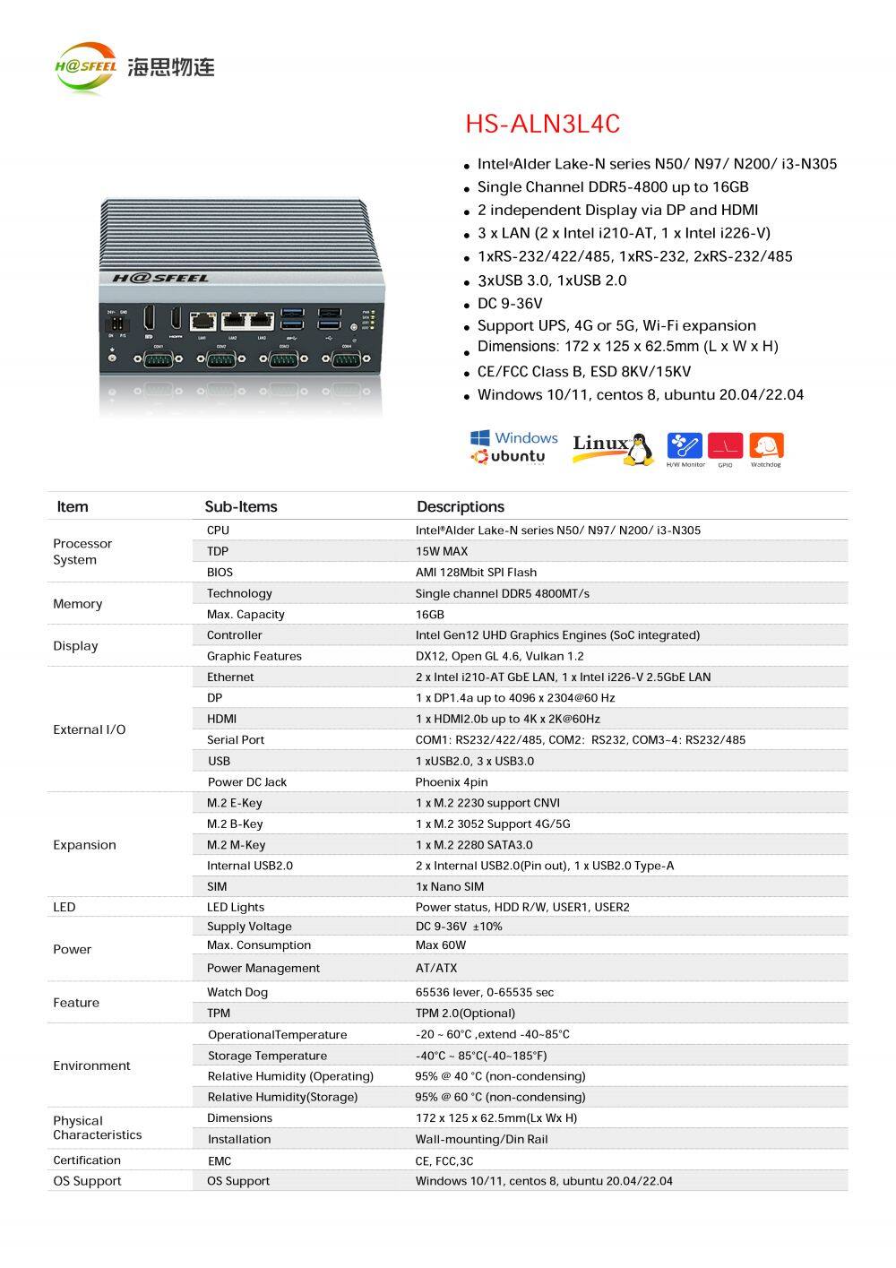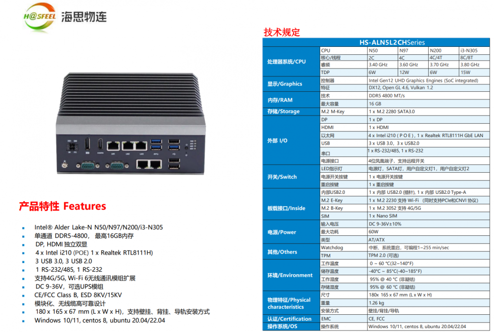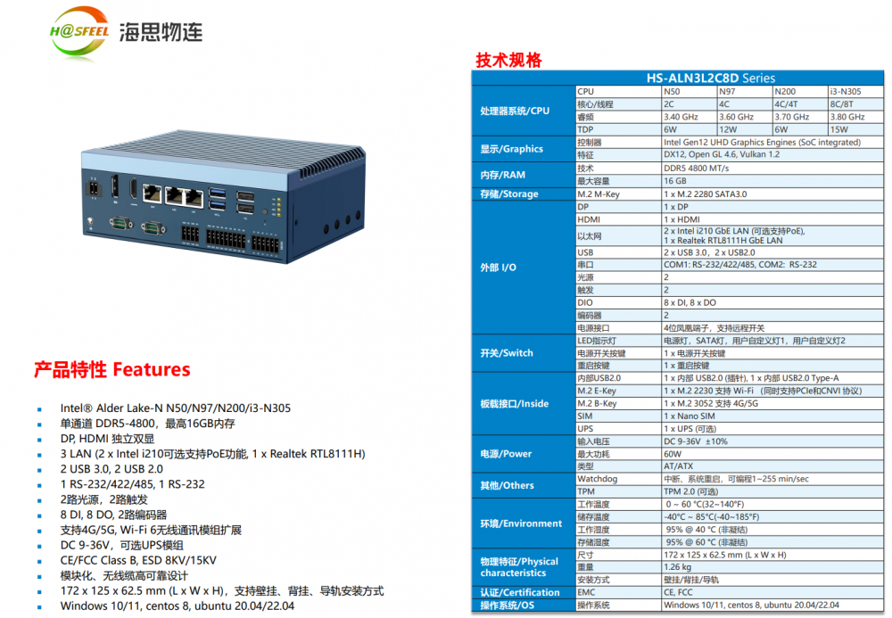 Hasfeel N305 N97 Embedded Industrial Computer 3*LAN With PoE DIN Machine Vision Control Minipc Fanless 24V Wide Voltage