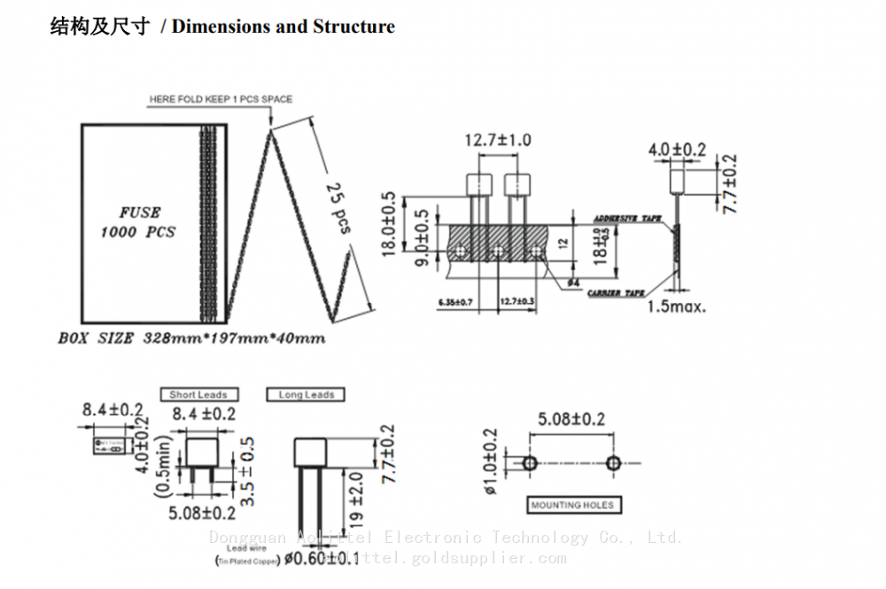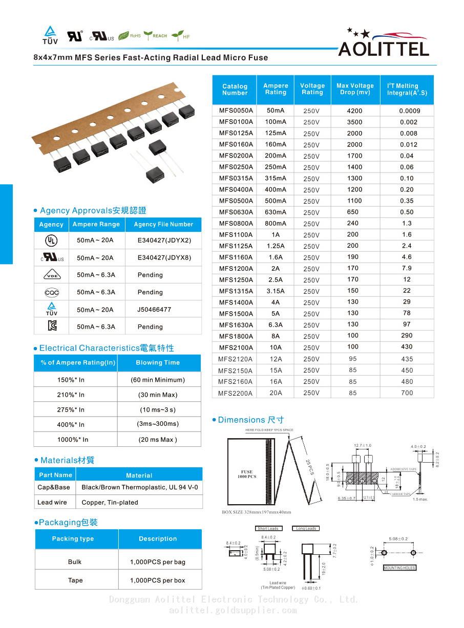 Square Fuse 8x4x7mm Fast Acting Fuse 250V Micro Fuse Radial Lead Micro Fuse