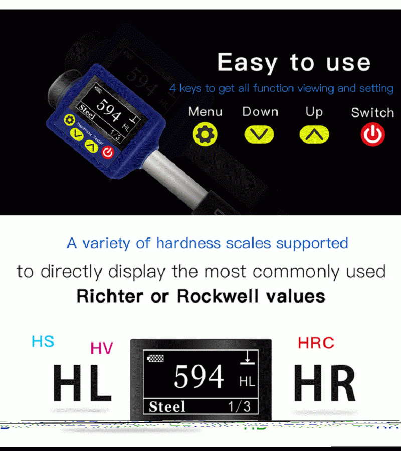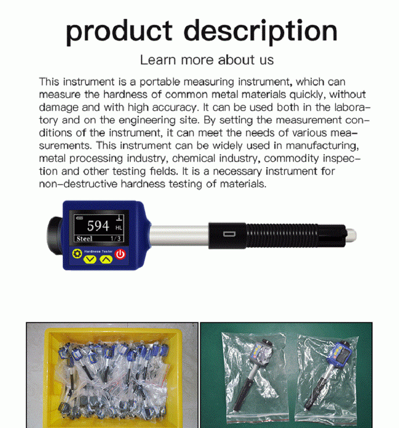 It can quickly, non destructively, and accurately measure the hardness of common metal materials. It can be used in both laboratories and engineering sites. By setting instrument measurement conditions, various measurement needs can be met. This instrument can be widely used in manufacturing, metal processing industry, chemical industry, commercial inspection and other testing fields. It is an essential instrument for non-destructive hardness testing of materials.