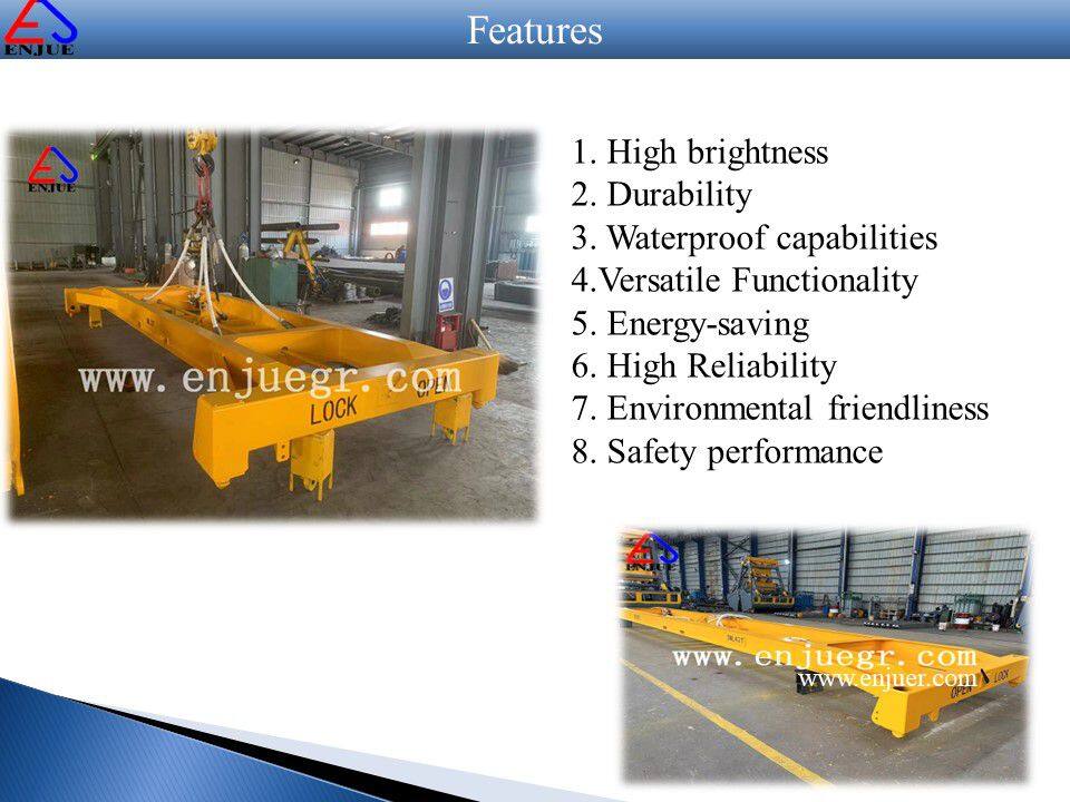 The working principle of a semi-automatic spreader primarily relies on mechanical structures and the elastic potential energy of springs During the lifting process, the spreader utilizes its self-weight and the force of the springs to rotate an intermediate axis, which subsequently engages the twistlocks into the corner castings of the container. Upon reaching the designated position, the spreader automatically unlocks and releases the container without manual intervention. Additionally, some semi-automatic spreaders are equipped with auxiliary devices such as rotating heads and hydraulic guide plates to adapt to different working conditions and enhance operational efficiency.