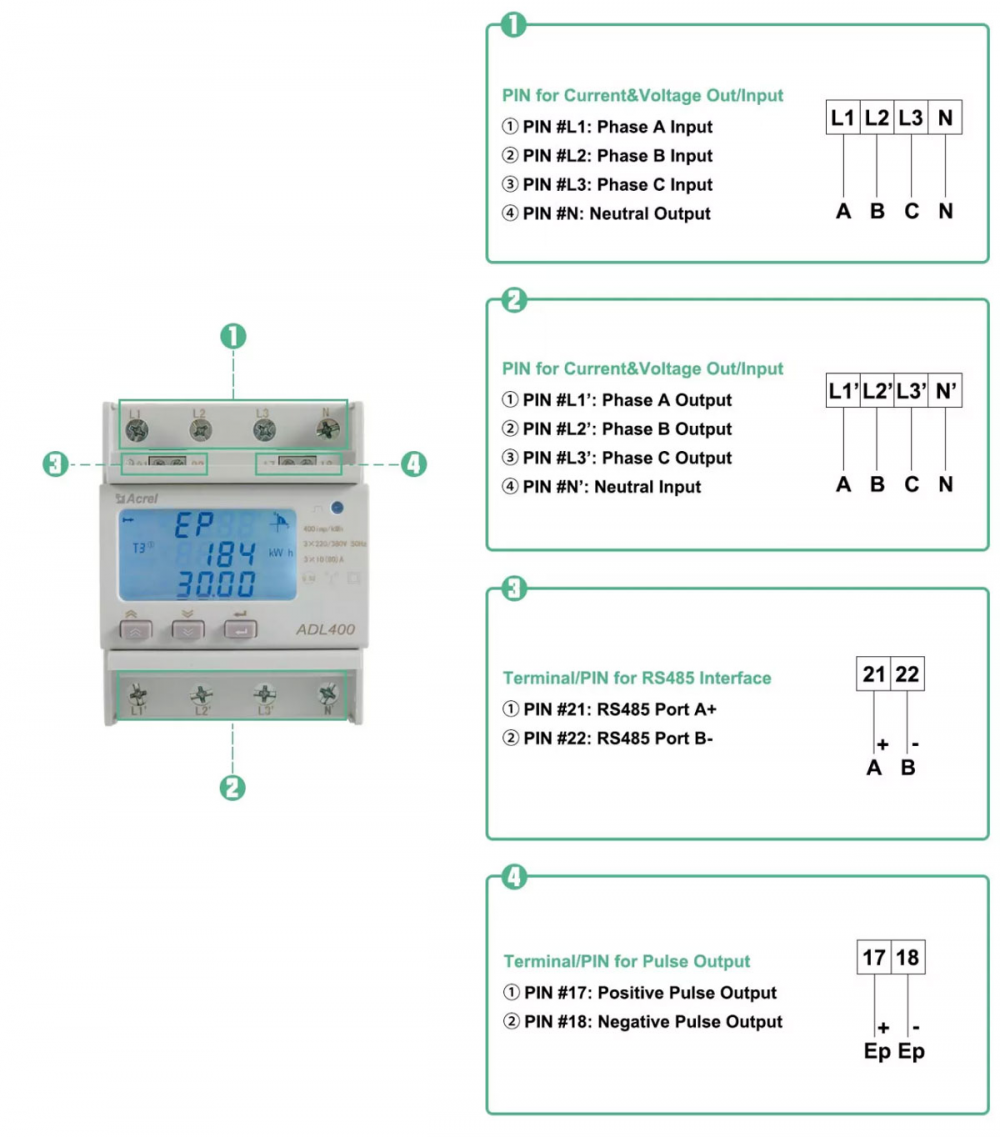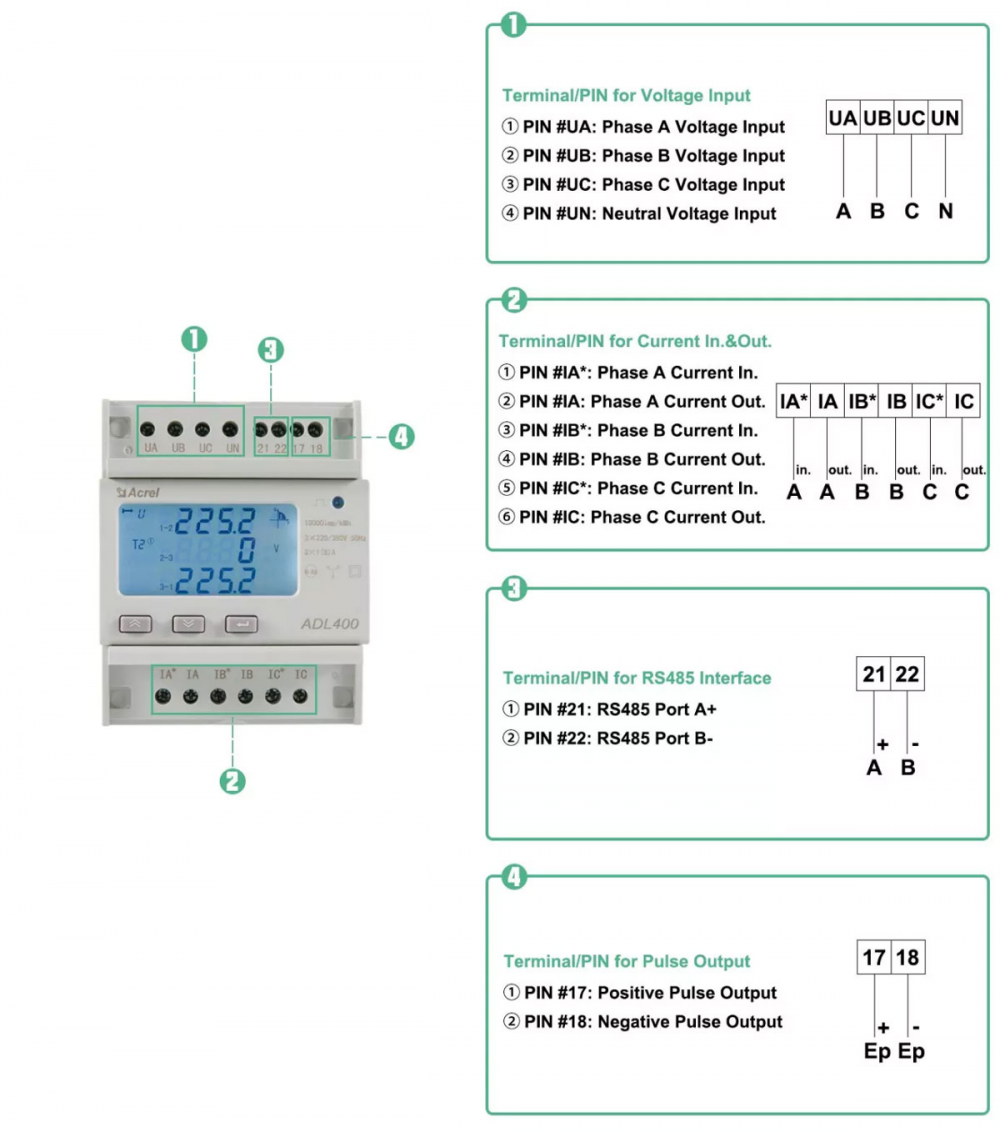 PIN/Terminal Overview of ADL400 (CT Operated Type)