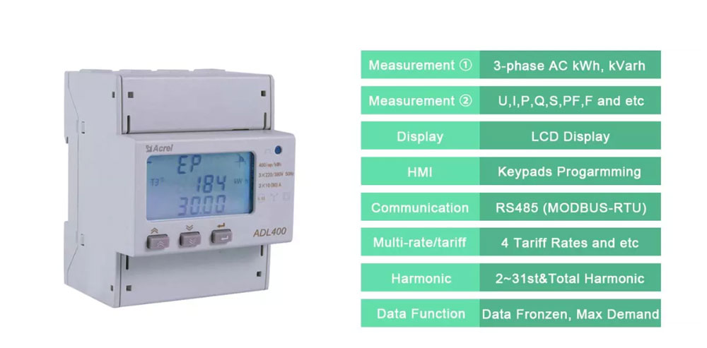 High Quality Acrel ADL400/F Multi Tariff Energies Din Rail 3phase 4wire 220/380V Energy Meter for Power Consumption Monitoring With MID Certificate