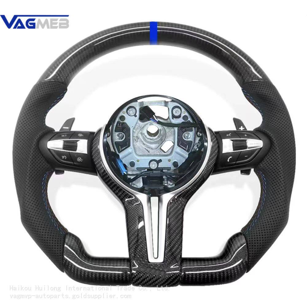 For BMW 3 Series 5 Series 6mm Perferatrd Leather Carbon Fiber Steering Wheel With Key Button Frame Assembly
