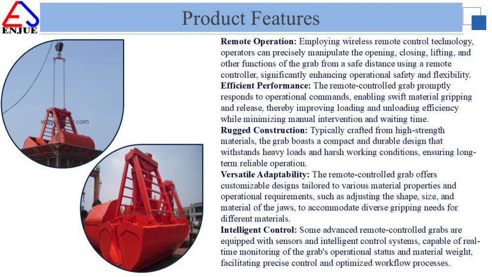 Versatility in Applications: Widely adopted across industries such as shipping, port operations, railway stations, factories, and mining, the remote-controlled grab serves as an ideal solution for handling bulk materials like coal, mineral powders, bulk fertilizers, and yellow sand, showcasing its immense versatility and value.