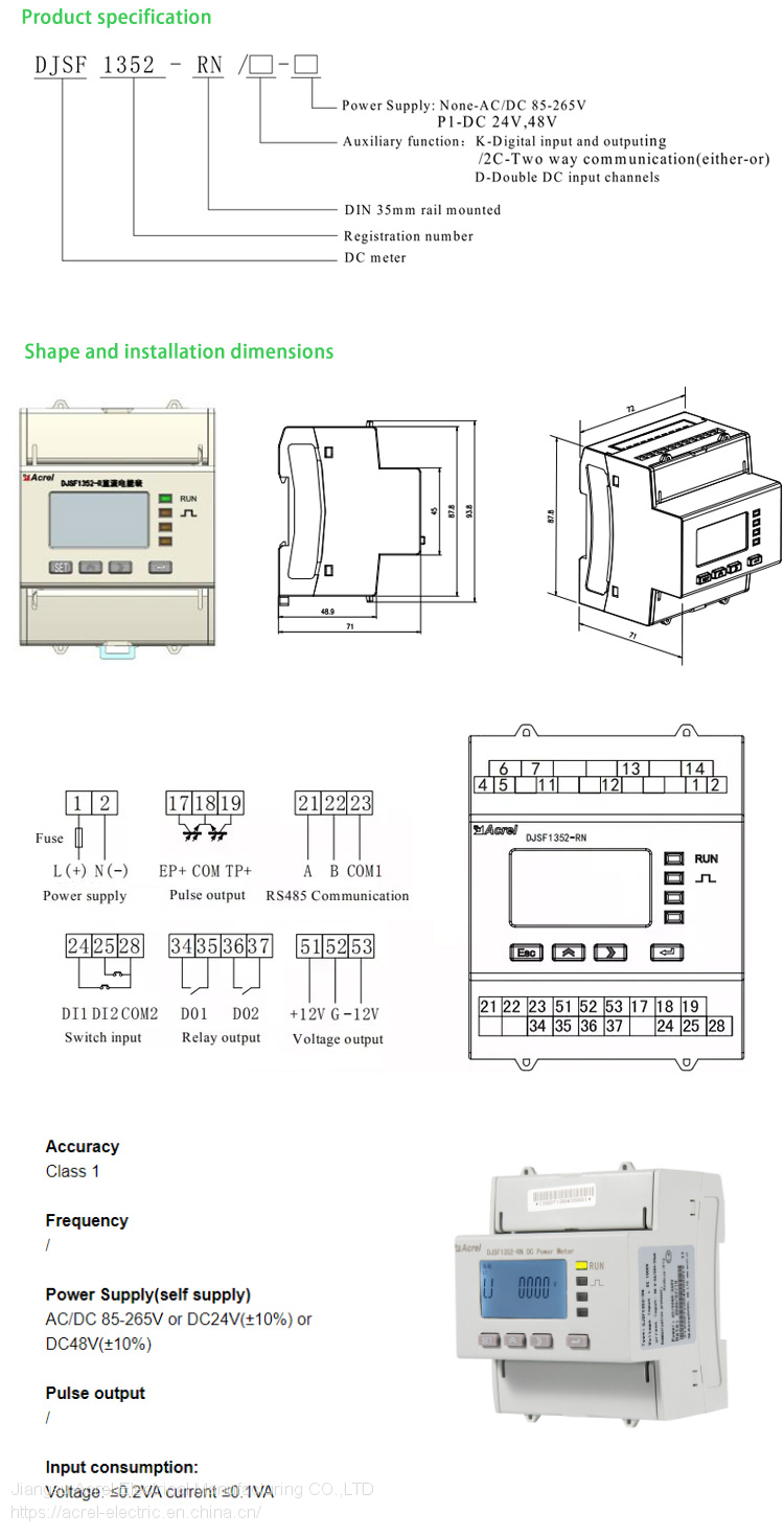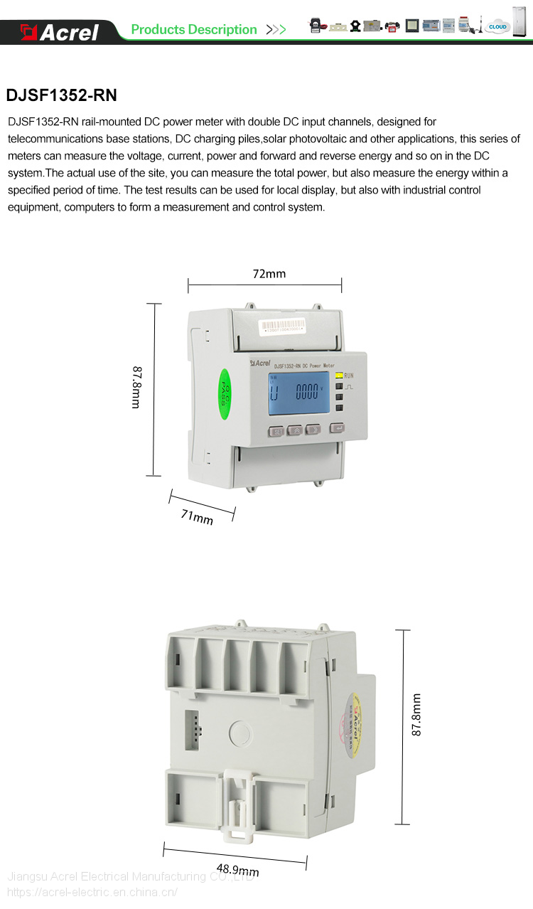 Reliable Performance Acrel DJSF1352-RN/D Rail Type 2 Circuits DC Power Consumption Meter With CE,UL Certificate/second Channel DC Measurement RS485 Modbus-RTU Communication