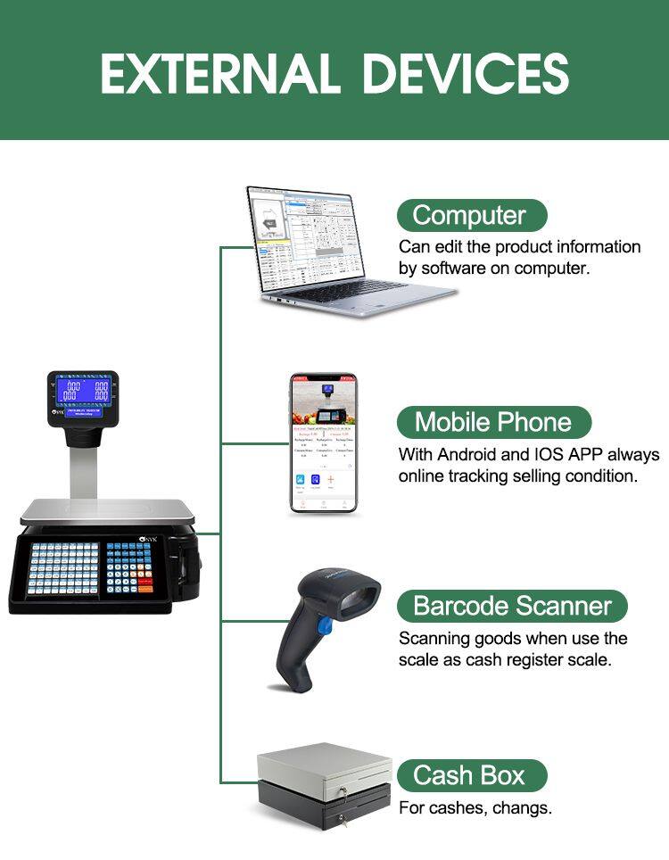 Best Quality CAS POS Interface Scale Barcode Weighing Scale With Free Manangerment Software With 58mm Label Invoice Printer