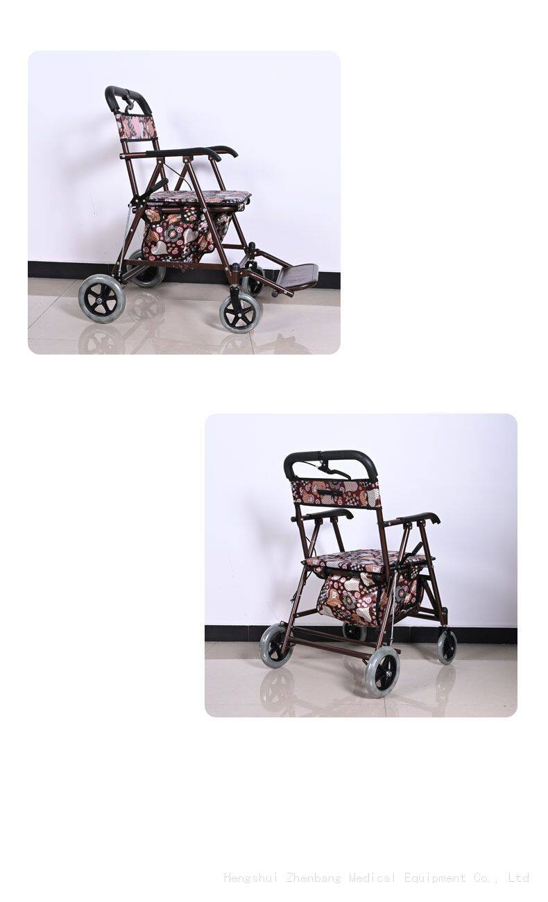 Zhenbang Elderly Commuting Cart, Vegetable Cart, Can be Seated, Pushed, With Brakes, Folding Cart, Elderly Four-wheel Commuting Assistance Cart