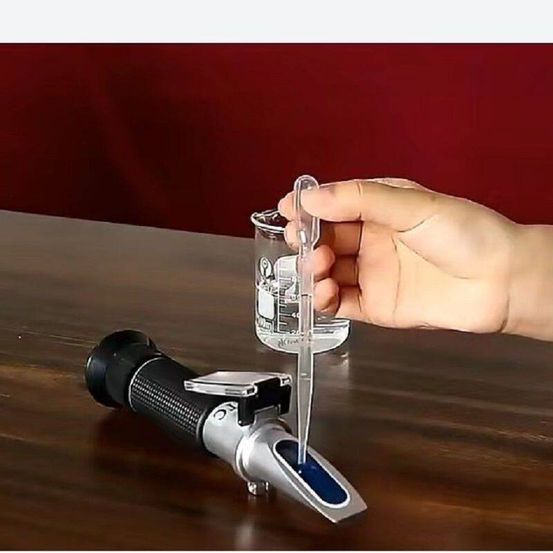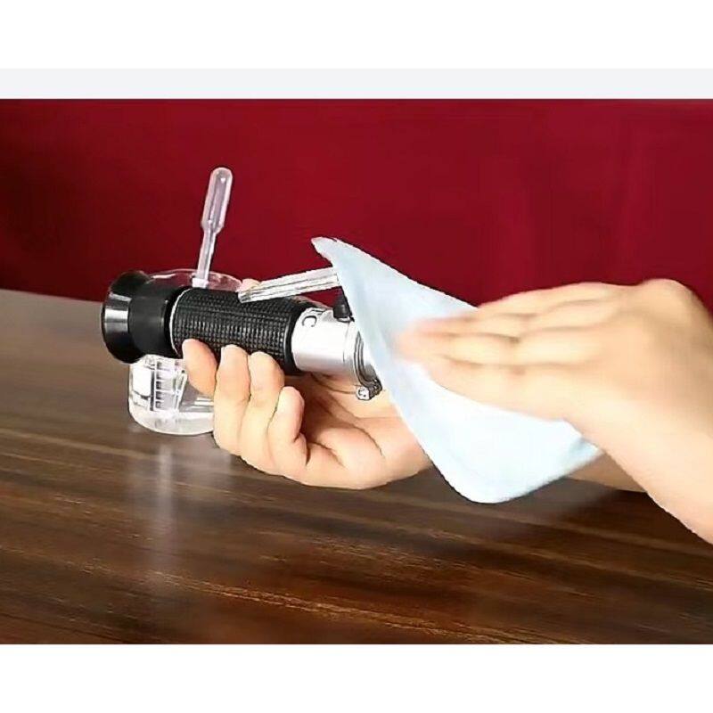 Take a few drops of distilled water and place them on the detection prism. Turn the zero adjustment screw to adjust the dividing line to the 0% position of the modulation scale, then wipe the detection prism clean and proceed with the detection.