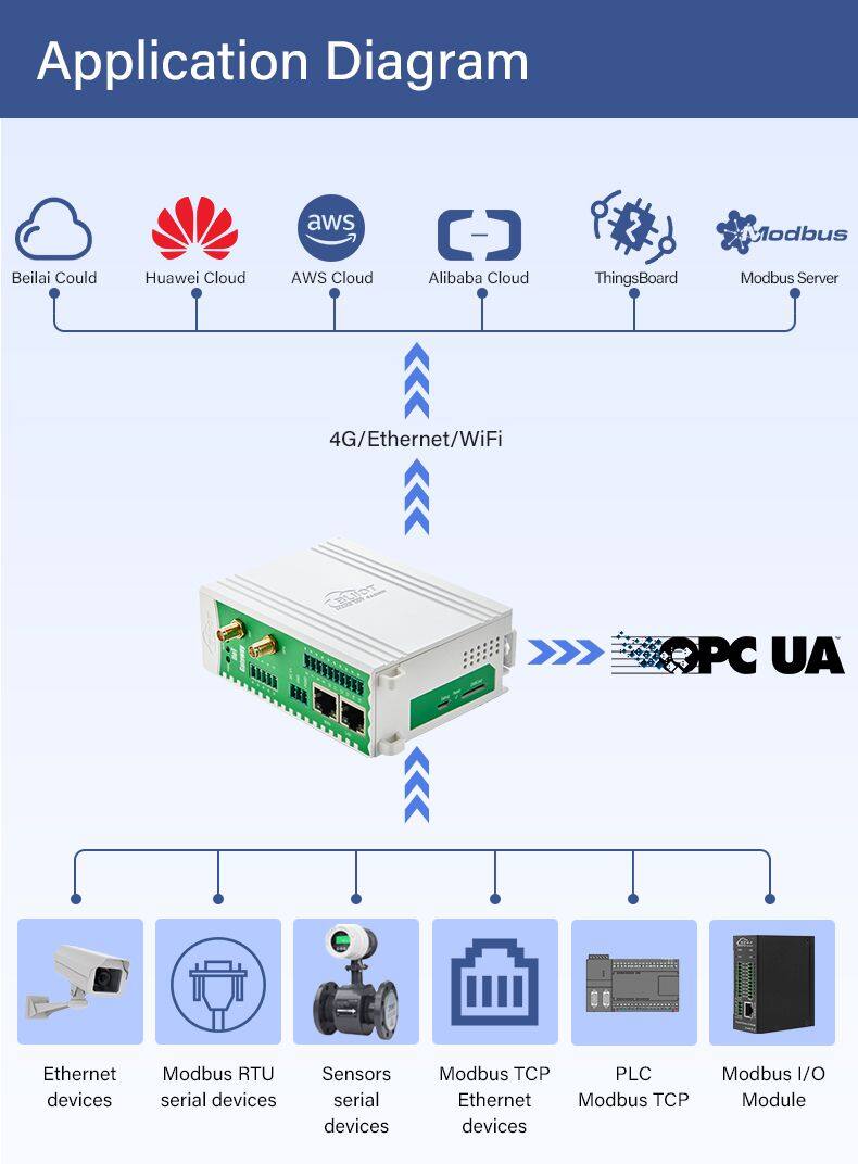 u Uplink supports Modbus RTU, Modbus TCP, OPC UA, MQTT