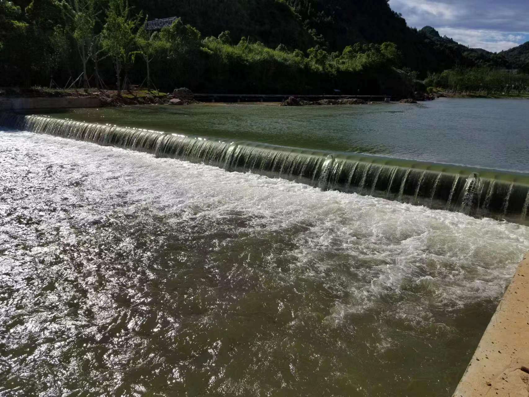 Air shield dam, also known as pneumatic steel shield rubber dam, is a new type of water retaining structure that combines the advantages of rubber dam and steel gate, with a balance of rigidity and flexibility. Its structure mainly consists of shield plate, inflatable airbag, and control system. Using inflatable airbags to support the shield plate to block water, the airbag will collapse after venting, and the airbag will lie under the shield plate to avoid damage to the dam bag caused by river sand, gravel, ice, and other debris; The filling medium inside the airbag is gas, causing rapid collapse of the dam: all components are prefabricated, with a short installation period; Modular shield and airbag for easy repair.