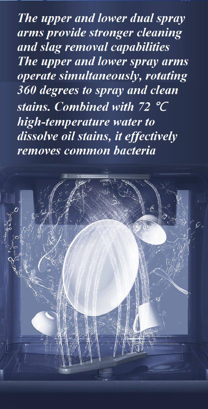 Washing method: 720 degree up and down dual spray arm rotating washing