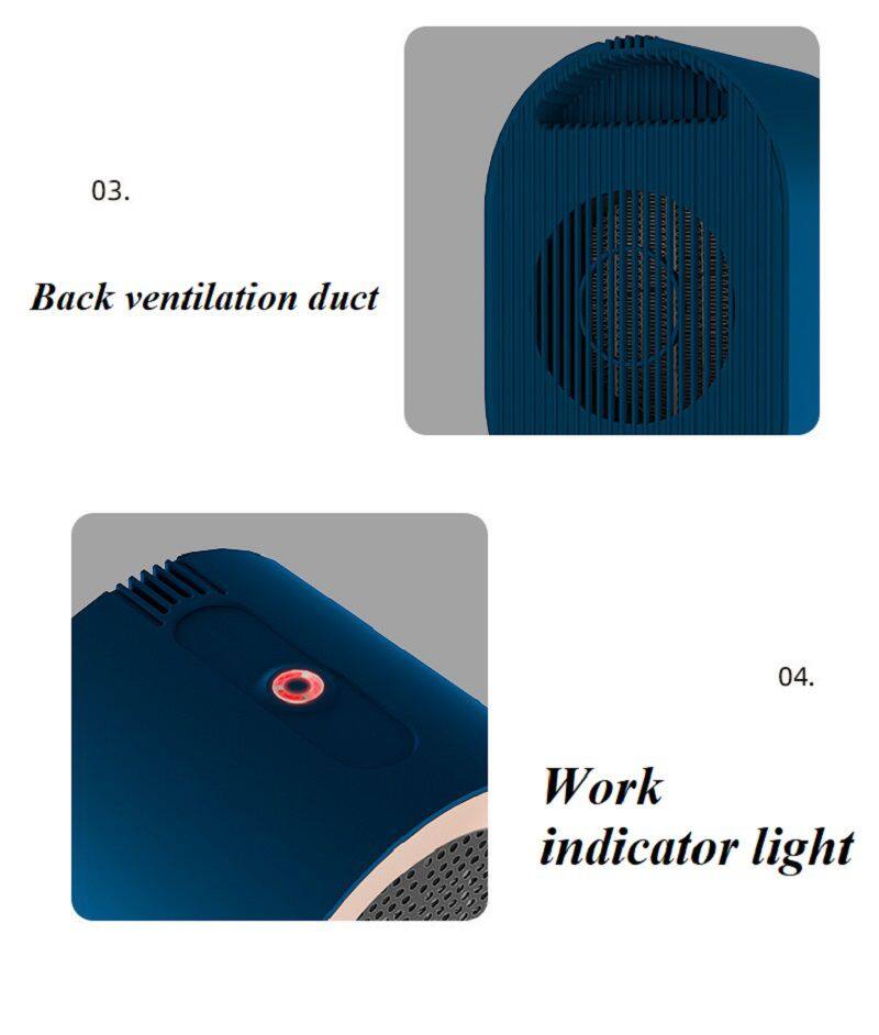 Features: Safety, protection against overheating and power failure, overload protection, intelligent temperature control, short circuit protection, tilting power failure, anti scalding grille