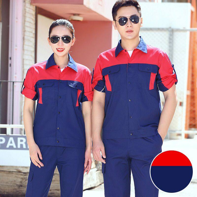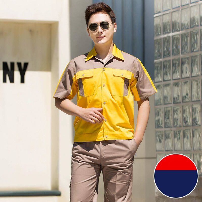 Color: Pure cotton color blocked short sleeved shirt with red on top and blue on bottom (set), pure cotton color blocked short sleeved shirt with gray on top and blue on bottom (set), pure cotton color blocked short sleeved shirt with khaki on top and yellow on bottom (set), pure cotton color blocked short sleeved shirt with hidden blue on top and gray on bottom (set), pure cotton color blocked short sleeved shirt with orange on top and khaki on bottom (set), pure cotton color blocked short sleeved shirt with khaki on top and brown on bottom (set), pure cotton color blocked summer long shirt with red on top and blue on bottom (set), pure cotton color blocked summer long shirt with gray on top and blue on bottom (set), pure cotton color blocked summer long shirt with orange on top and khaki on bottom (set)