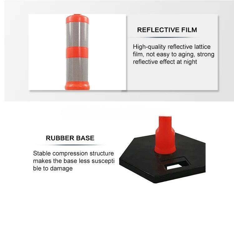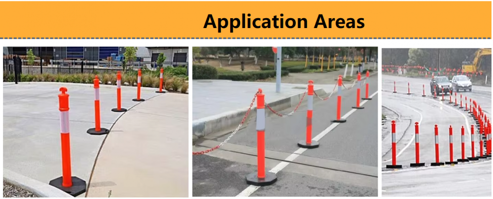 Safety pile cone: the warning column is a kind of isolation used between roads, buildings and parking spaces, so that the driving motor vehicles play a warning role. Movable fixed column: enhanced stability and impact resistance are achieved through the innovative water-fillable design of this product.