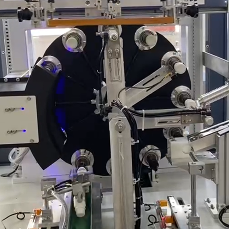 Automatic curved screen printing machine, mainly used for cylindrical/conical/curved surface and other circular surface monochrome printing, the design of the transmission structure is smooth and simple, flexible and convenient operation, printing speed, good effect, etc., printing material can be glass, plastic, metal and other materials.